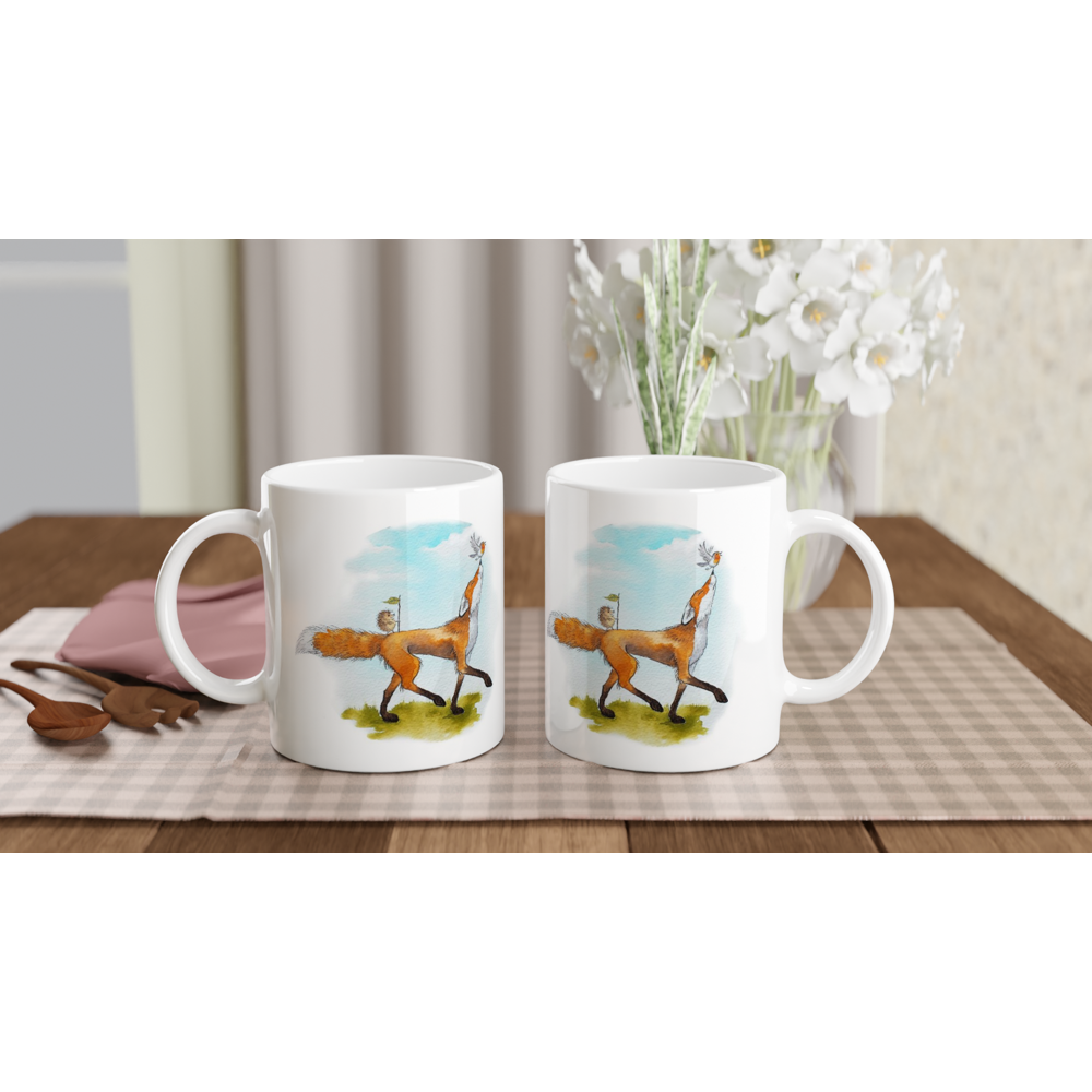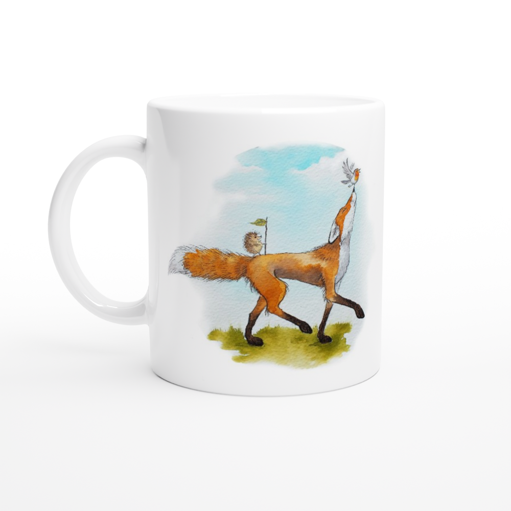 Start your day with a smile and a heart-warming message! My "Fox and Friends Peaceful Protest" 11oz Ceramic Mug features a whimsical watercolour illustration of a brave fox leading his pals, a hedgehog and a robin, in a gentle protest. This mug isn't just charming; it's designed for your daily enjoyment. Perfect for your morning coffee, soothing hot chocolate, or any favourite hot beverage. Its glossy white finish with vibrant coloured print makes every sip a delight. The high-quality print is both microwave and dishwasher safe, ensuring its vividness lasts.