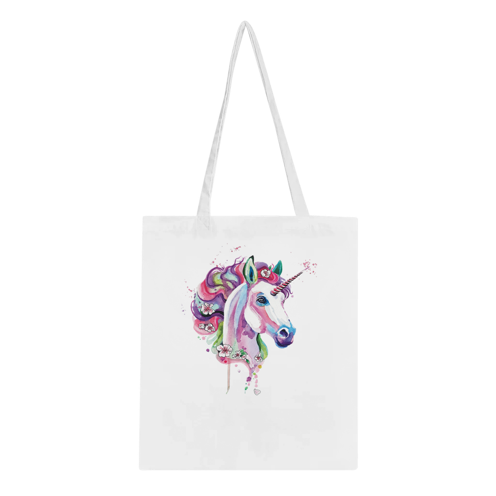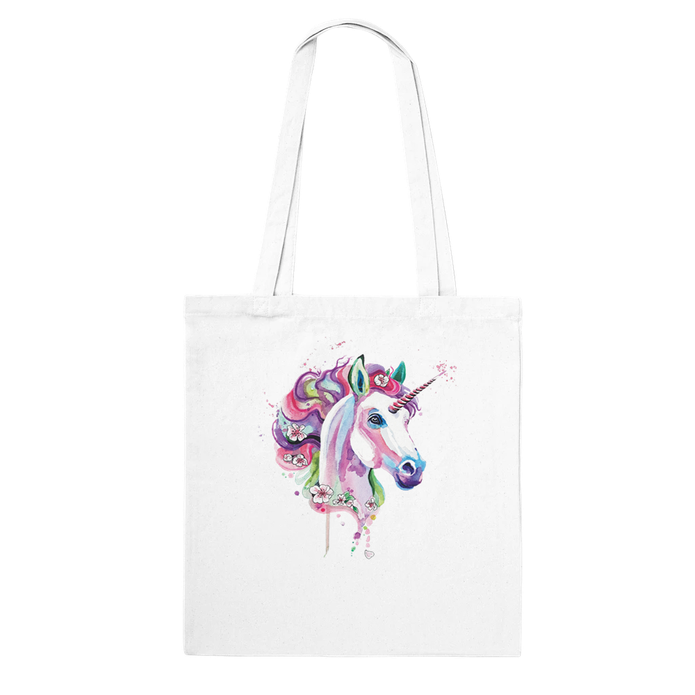 Bring magic to your daily errands with my Watercolour Unicorn Tote Bag, featuring a stunning floral-themed unicorn design. Perfect for eco-conscious individuals, this tote bag is made from 100% cotton and has reinforced stitching on handles to ensure durability. Comes in white or natural. 10-liter capacity and a large print on both sides. Ideal for grocery trips, beach days, or everyday use, this bag combines style and practicality. Order your watercolour unicorn tote today and make every outing enchanting!